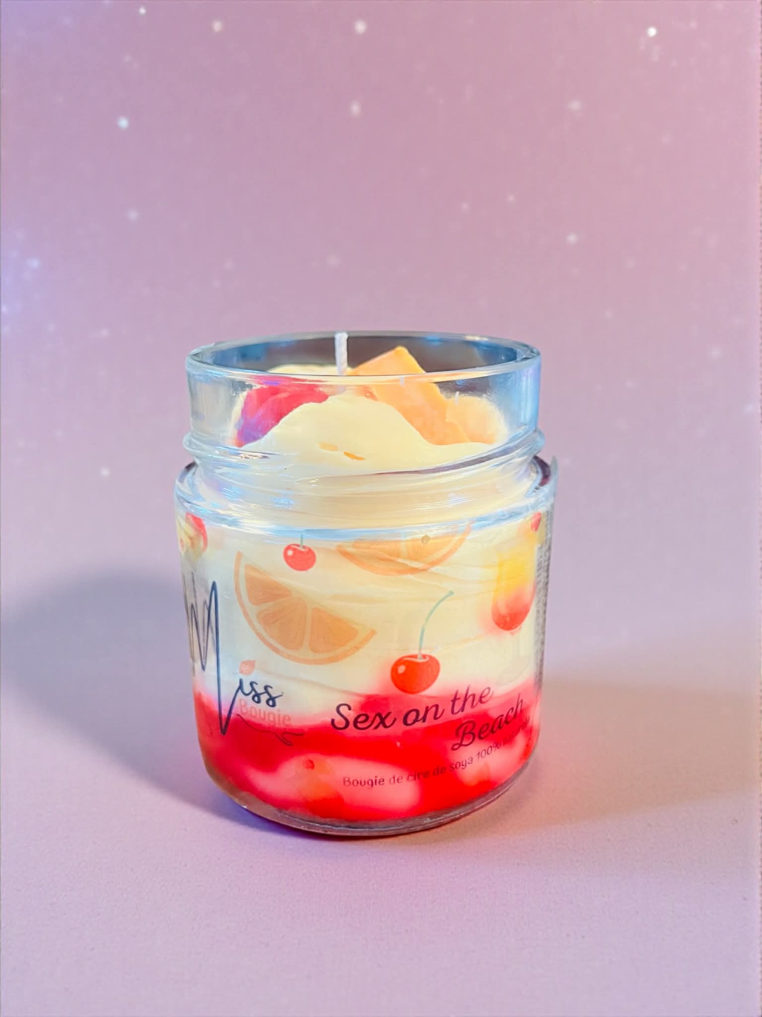 Plonge dans une ambiance tropicale avec cette chandelle Sex on the Beach, inspirée du célèbre cocktail fruité. Son dégradé rouge vif rappelle un coucher de soleil sur la plage, tandis que la cire blanche crémeuse évoque la douceur d’une brise estivale. Sur le dessus, des morceaux de fruits décoratifs et une cerise colorée ajoutent une touche gourmande qui donne envie de siroter un drink les pieds dans le sable. Une bougie éclatante, fraîche et exotique, parfaite pour apporter une atmosphère joyeuse et ensoleillée à ton espace.